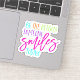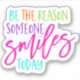 Be the reason someone smiles today - Inspirational quote sticker decal.  Bright and vibrant coloured text  in shades of aqua blue, lime green, orange, purple and pink.