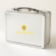 This is a standard metal lunchbox that appears to work just fine. We designed this box ourselves with an uploaded photo and custom text on the front and back. It looks absolutely beautiful except the front of the lunchbox is not centered like it shows in the photo. The print borders don't align with the inset flat part of the box where the preview photo online showed it perfectly centered in there. The back looks nice and centered though.