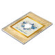 Be Transformed Quote Heart and Blue Butterflies. Round gold banner with blue butterflies morpho on grey textural background Design with butterflies.