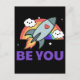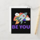 Be you. Rainbow rocket cloud with heart. Poster Postcard
