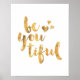 Be you tiful watercolor typography poster print features modern hand written typography in faux gold foil Beautiful inspiring art for a kids room or the living room. Also comes in different colours.