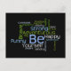 This postcard features a popular inspirational text design that's also called a word cloud. The main subject is 'Be' and the other words are inspirational to help support us to Be the best we can be! The text colours are soothing blue, greens and white on a black background. Perfect for teenagers that could use a confidence boost. All products are customisable.