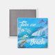 Dolphins in the surf, sea turtle under water and people playing on the beach, idyllic seaside painting with "take me to the beach" in modern typography.