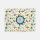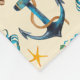 A cute personalised blanket with a a summery tropical themed pattern filled with items from the beach created with watercolors. Crabs, seashells, starfish and anchors. Cream and blue colour scheme.
