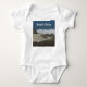 Welcome a beach baby to your family with this bodysuit featuring a photograph of the California coast. Sand dunes and crashing waves appear below a bight blue sky. Easily customise all text.