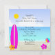 Ethnic African American Baby Shower. Surfing Baby Cute Baby Shower, Beach Baby Girl Pink and Teal blue Yellow sunhat, Pink Surfboard, Beach Ball, Sunglasses, Flowers, Thong, Flip flops, "it's a girl" Summer Baby Shower. Beach Party Invitation.