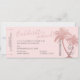 Invitation to a chic beach bachelorette weekend girl's trip in the form of a boarding pass plane ticket with a pink faux rose gold foil palm tree and lots of room for the travel plans or itinerary on the back!