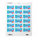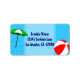 A custom address label with blue custom letters and fun beach or swimming pool themed art of a red beach ball, green sun umbrella on a watery blue background with curly waves. Customise It to change fonts, colours, elements, label size and more, even save your design for later.