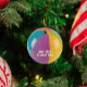Remember fun times, a beach vacation or celebrate a swimmer with this ornament featuring a multicolored beach ball. Personalise with ANY name, names or location and your own custom greeting!