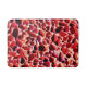 This rug is just as pictured! Vibrant Red and very soft material, nice to step in out of the tub!  Matches my set of accessories and  shower curtain! A must have to add some whimsy to your bathroom! Very nice, vibrant and clear print! Beautiful!