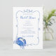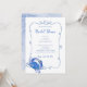 Watercolor crab in shades of blues with dusty beach blue doodle frame invites guests to a playful, coastal themed event. Handwritten script typography paired with a distinctive classic serif font brings whimsy and class together in a casual beach vibe. Elegance without being stuffy or overdone, just primed for fun!