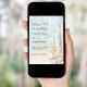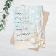 A rustic beach wedding invitation with driftwood, seashell and sand. Blue and beige colours. Personalise and add your names and details.