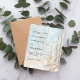 A rustic beach wedding invitation with driftwood, seashell and sand. Blue and beige colours. Personalise and add your names and details.