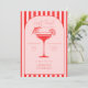 Celebrate the bride-to-be with a destination bachelorette. This "last toast on the coast" bachelorette party is fun and elegant, featuring a boho arch with nautical stripes in the background and a minimalist cocktail glass on the front, all in a beautiful, harmonious colour scheme of trendy crimson red and pink. This elegant and classy itinerary invitation will get the girls on the road. Pop the champagne, bring out the sunscreen, the swim suits and the sunglasses and have a wild time! Simple and modern, it's the perfect way to give her a celebration to remember as she transitions from Miss to Mrs.