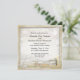 Beautiful beach themed square wedding invitation combines the rustic with the elegant. Weathered wood faux frame on a watercolor style sandy beach and surf background with romantic message in a bottle, wedding diamond and starfish accents. Soft neutral colours and sweet details. Can coordinate with other items in our Beach Wedding design collection. Formatted text all ready for you to edit with your own details on the front and back.. Unique theme for beach wedding and island resort events. Created in part with commercial use licensed purchased artwork by Andjelina's Designs, and Sekada Designs from cu4you.com. See also matching RSVP enclosure card and other items.