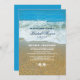 Romantic beach bridal shower invitations with rope knot and starfish couple. Elegant nautical design features sea wave, white foam and wet sand. Designed for beach, destination and coastal bridal shower.