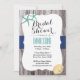 Beach Bridal Shower Teal Starfish Rustic Wood Invitation