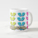 This Beach Bum Flip Flops Speciality Mug features a sandy background, colourful flip flops in purple, yellow, blue, pink and green with orange flowers. Decorative sandy text is Beach Bum. Available in 3 styles; Jumbo, Espresso and Bone China. Perfect for any room in your home, beach house or office. Also makes a wonderful housewarming gift! Matching items include; pillows, dinner & cocktail napkins, place mats, kitchen towels, tiles/trivets, coaster set, mugs, pitcher, teapot and candy jars are also available in our shop. This design was created using original artwork©delightful-doodles.com (http://delightful-doodles.com/)