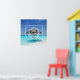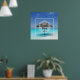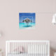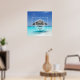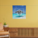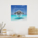 A poster with a tropical image of a turquoise sea with a white sandy beach and a single thatched beach umbrella. Typography says Beach Bum.