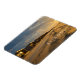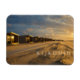 Rectangular photo magnet with a row of beach cabins on the North Sea beach of Kijkduin in the Hague during a nice sunset in the Netherlands with the text 'Kijkduin, Netherlands'.