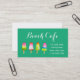 A cute vintage retro style business card suitable for a café - either mobile café or coffee shop. This whimsical design shows a popsicle watercolor cute illustration against a beach teal blue background. The background colour can be changed to suit your taste. This business card is fully customisable to include your own personal details.