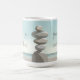 Start your morning with this 15 ounce coffee mug featuring a beach landscape with cairn stones in the foreground with the customisable words, "Joy, Peace, Mindfulness and serenity.