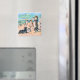 This magnet is great and very sturdy. It has a glossy shine on the front. I really like this vintage image of cats playing on the beach. I used it for a decorative refrigerator magnet. The print looks nice and the colors look wonderful.
