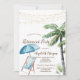 Watercolor palm with leaves, string lights, beach chair, and parasol.
