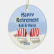 Get ready for the sunset years with this tropical design featuring red and white striped beach chairs, a starfish and island background. Perfect gift for retirees. Customisable text. PinkInkArt original!