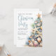 Invite guests to your Christmas party with this festive and beachy invitation, designed with a relaxed tropical vibe. The layout features a mix of blue and black fonts on the top left, combining script calligraphy with clean serif typography for a cheerful and modern look.