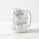 Looking for gift ideas with a coastal twist? This personalised beach Christmas coffee mug features a beautifully illustrated sea turtle, accented with festive greenery and red berries. The phrase "Seas & Greetings" is elegantly displayed in trendy red script, making this a perfect choice for turtle gifts and ocean lovers.