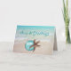 Seas and greetings tropical Christmas card with custom greeting and message inside. Folded cards come in three sizes and have a starfish and tree ornament on the front over a tropical scene of turquoise sea water and beach sand. Also add a signature. Text on front can be changed to "Merry Christmas" or "Happy Holidays".