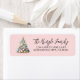 Beach Christmas Tree Return Address Label. This festive return address label features a charming Christmas tree crafted from seashells and starfish, topped with a starfish for a coastal holiday touch. The design rests on a sandy base against a light blush pink background, creating a soft, beachy feel. On the right, your name and address appear in clean black script and serif fonts for a simple yet elegant look. Perfect for Christmas cards or holiday invitations, this design adds a subtle seaside charm for anyone who loves tropical or coastal holiday style.