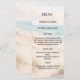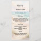 Add a refined coastal touch to your reception with this elegant beach wedding menu card. Featuring soft ocean tones, sandy textures, and a clean, timeless layout, this design perfectly complements a romantic seaside celebration.