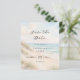 A watercolored sandy beach, sand dunes, ocean waves background. Personalize and add a date and your names. The text: Save the Date is written with a large trendy hand lettered style script.