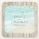 Beach Coastal Rustic Wood String Lights Wedding Square Paper Coaster