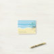 Beach coastal theme sticky custom notepads designed with a scenic beach graphic and text you can personalize that says A note From: with space to type your name, company name, or business information. Keep in touch with customers, associates. or take notes for yourself.