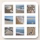Gorgeous coasters for any beach lover with a collage of 6 photographs of pebbles, sand and sea.