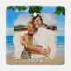 Christmas ornament for newlywed couples. Beach themed, with two, frosty cocktails on one side, and sea view on the other. Your text over the cocktails could be your names, along with "First married Christmas", "First Christmas as Mr. & Mrs.", etc.. On the other side of this square ornament, upload a photo to a brushstroke frame and include the year date.
