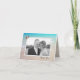 Beach wedding photo thank you folded note card. Two starfish and "thank you" text on the front with a big template for sharing a picture of the newlyweds. Inside, type a personal thank-you message over a beach sand background image. This card comes in three sizes.