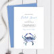 Make waves with these crab bridal shower invitations — a charming choice for coastal bridal shower invitations and bridal shower themes beach lovers will adore. Featuring a hand-painted blue watercolor crab on a crisp white background with a coordinating blue back, this design blends coastal elegance with summer fun.