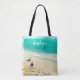 Create a custom personalised tote bag on beach art design with blue ocean and sea gulls in watercolor style. Art copyright Ann Powell all rights reserved.