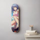 Stylish skateboard deck featuring a vibrant anime-inspired design: a blue-haired girl in a casual summer outfit, relaxing under palm trees with a bright blue sky in the background. Perfect for anime fans who love a tropical, beachy vibe. High-quality print with vivid colors, making it a unique eye-catcher for any skate session