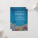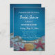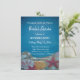 Beach deep blue wedding shower invitation, Beautiful deep blue ocean wedding theme with starfish and multicolored sea shells on a white sand
