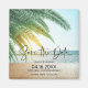 Tropical beach destination wedding save the date magnets. Customise with your names, wedding date and the location of your beach destination wedding.