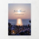 Tri-fold beach or destination wedding invitation featuring two of your own favourite photos. The design shows a bohemian coastal scene with lantern and candle with light sparkles overlooking an ocean. The details panel has a modern purple design. You can use the space also to add all information you would put on an enclosure card, like accommodation or directions etcetera. Alternatively you can use the last page as RSVP card.