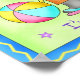 Enjoy this fun and whimsy dog poster. “I’m ready to Play” - aren’t you. This dog’s ready for fun time at the beach with a beach ball and umbrella. With the cool sunglasses, fuchsia and turquoise flip flops, orange beach tee shirt and a purple beach hat, he’s ready to go, dressed in style. The background is green with purple stars and a blue border. The sun is out and shinning for a perfect day and he’s ready for you to toss the ball. Text at the bottom reads “I’m Ready to Play”.