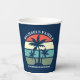 Cute summer family reunion beach party paper cups for an island cruise or tropical seaside trip. Features beautiful palm trees in front of a pretty ocean sunset.
