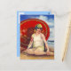 Beach Flapper Girl Postcard Asian Umbrella Cloche