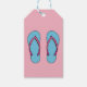 An illustration of a pair of pink and blue beach flip flops. It's summertime! Let's take a break and have some fun under the sun. Aren't you excited to prepare all your stuff for vacation? Don't forget your flip flops.